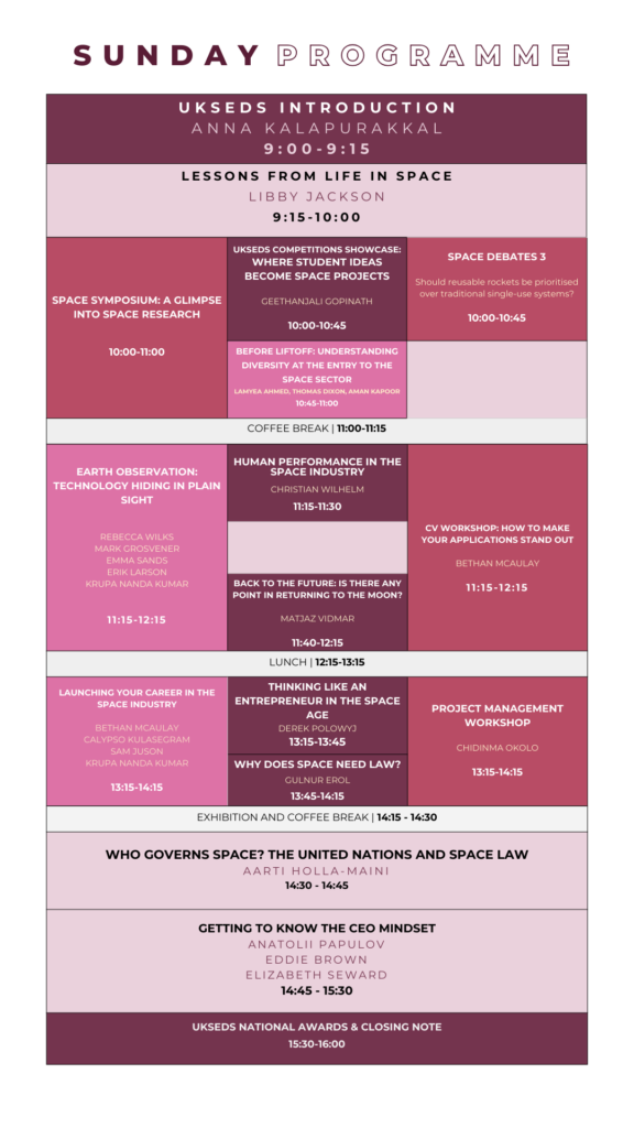 Geethanjali began her involvement with UKSEDS as a volunteer in the Olympus Rover Trials, driven by her background in Astrophysics and interest in planetary exploration. During her postgraduate studies in Space Engineering, she worked with the Aberystwyth University PanCam Emulator (AUPE), developing a flat-field calibration system for integration into the PanCam Operations Toolkit (PCOT) aboard the Rosalind Franklin Mars Rover. She now serves as Competitions Lead at UKSEDS, where she oversees four national competitions, drawing on her personal expertise to support student teams and deliver a successful annual programme.